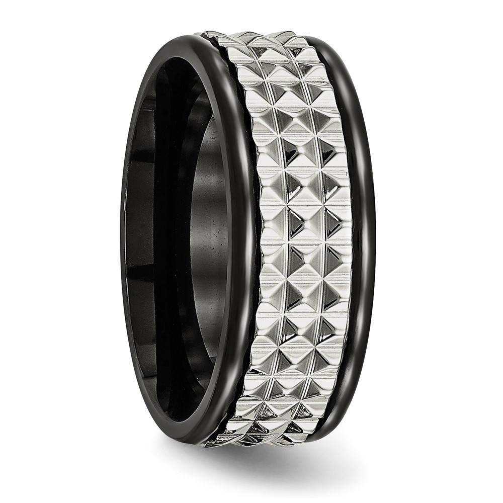 Stainless Steel Polished Black IP-plated 9mm Studded Band