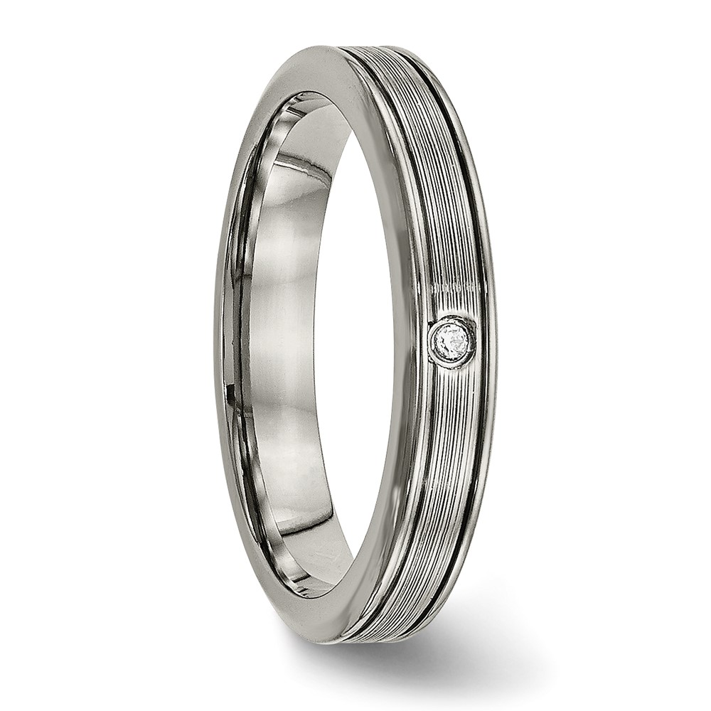 Titanium Polished with CZ 3.75mm Grooved Comfort Fit Band