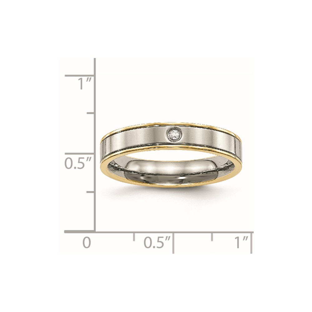 Chisel Titanium Polished Yellow IP-plated with CZ 5mm Grooved Comfort Fit Band