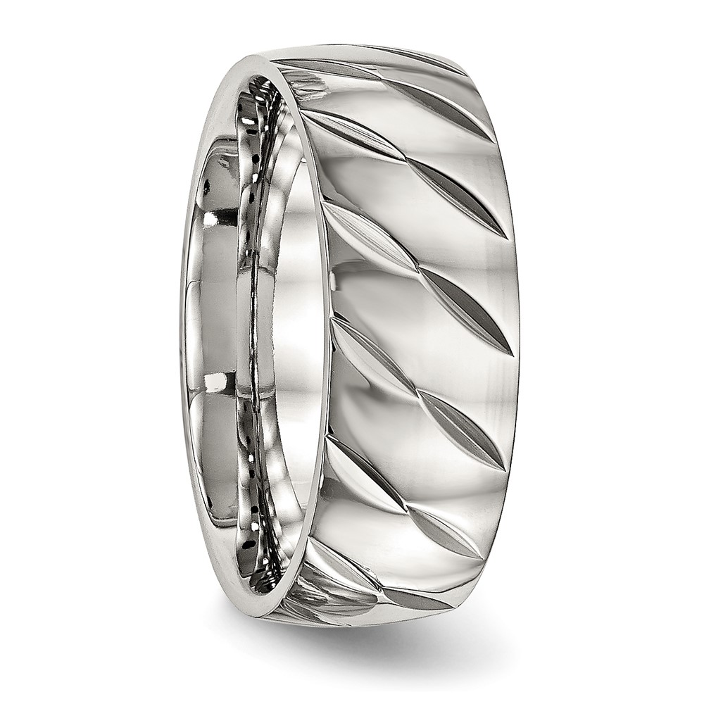 Stainless Steel Polished Diamond Cut 8mm Band