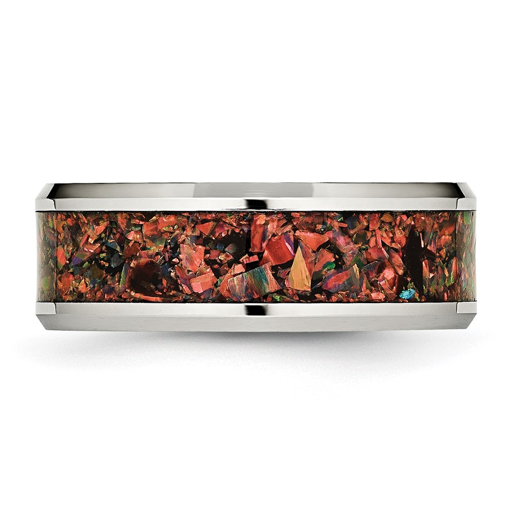 Chisel Stainless Steel Polished with Red Imitation Opal Inlay 8mm Band