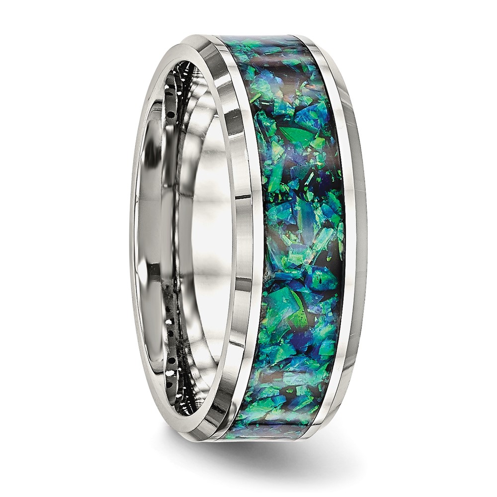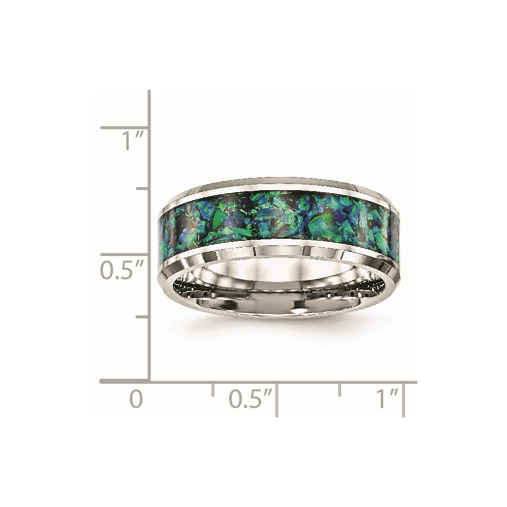 Chisel Stainless Steel Polished with Blue Imitation Opal Inlay 8mm Band