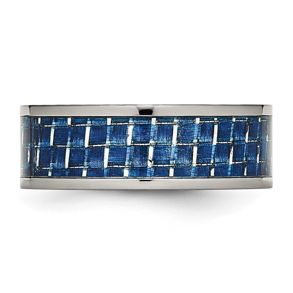 Chisel Titanium Polished with Blue Carbon Fiber Inlay 8mm Flat Band