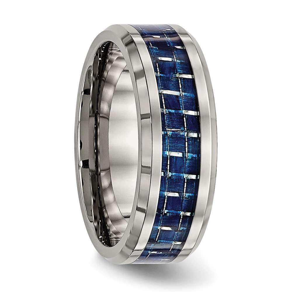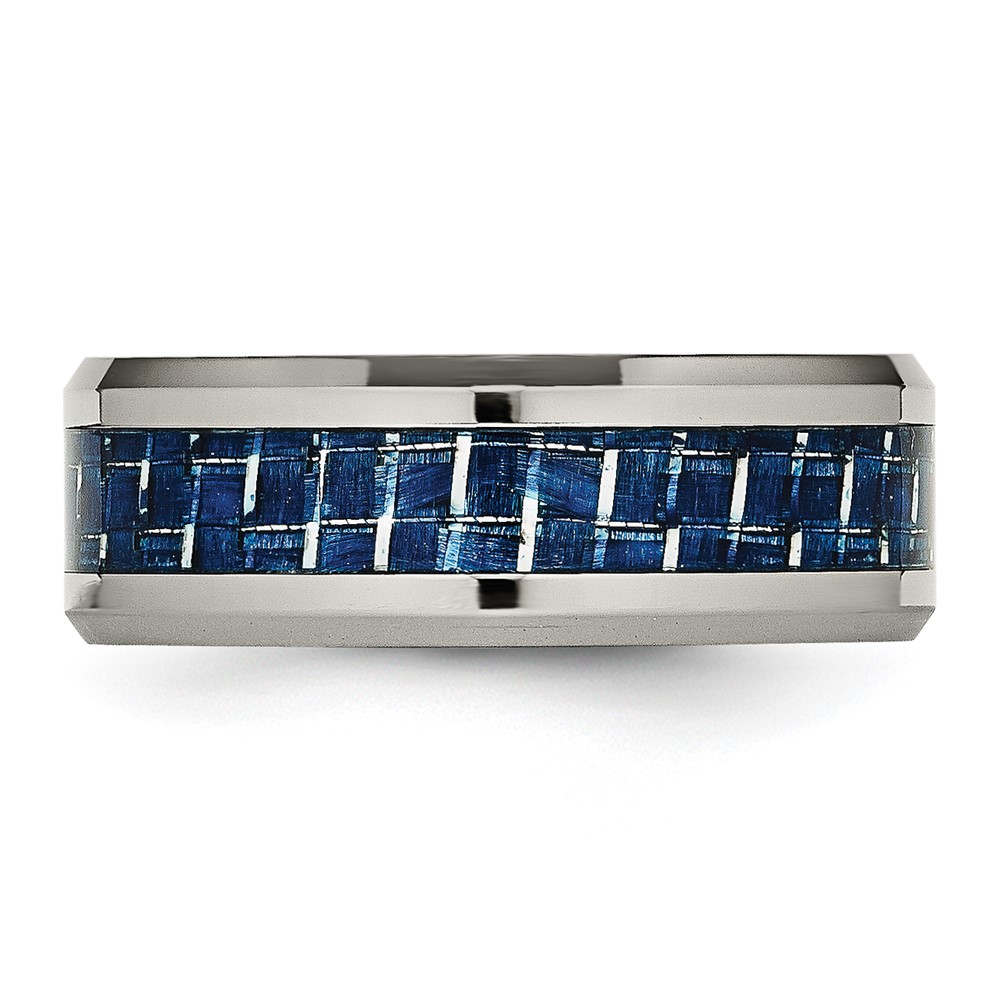 Chisel Titanium Polished with Blue Carbon Fiber Inlay 8mm Beveled Edge Band