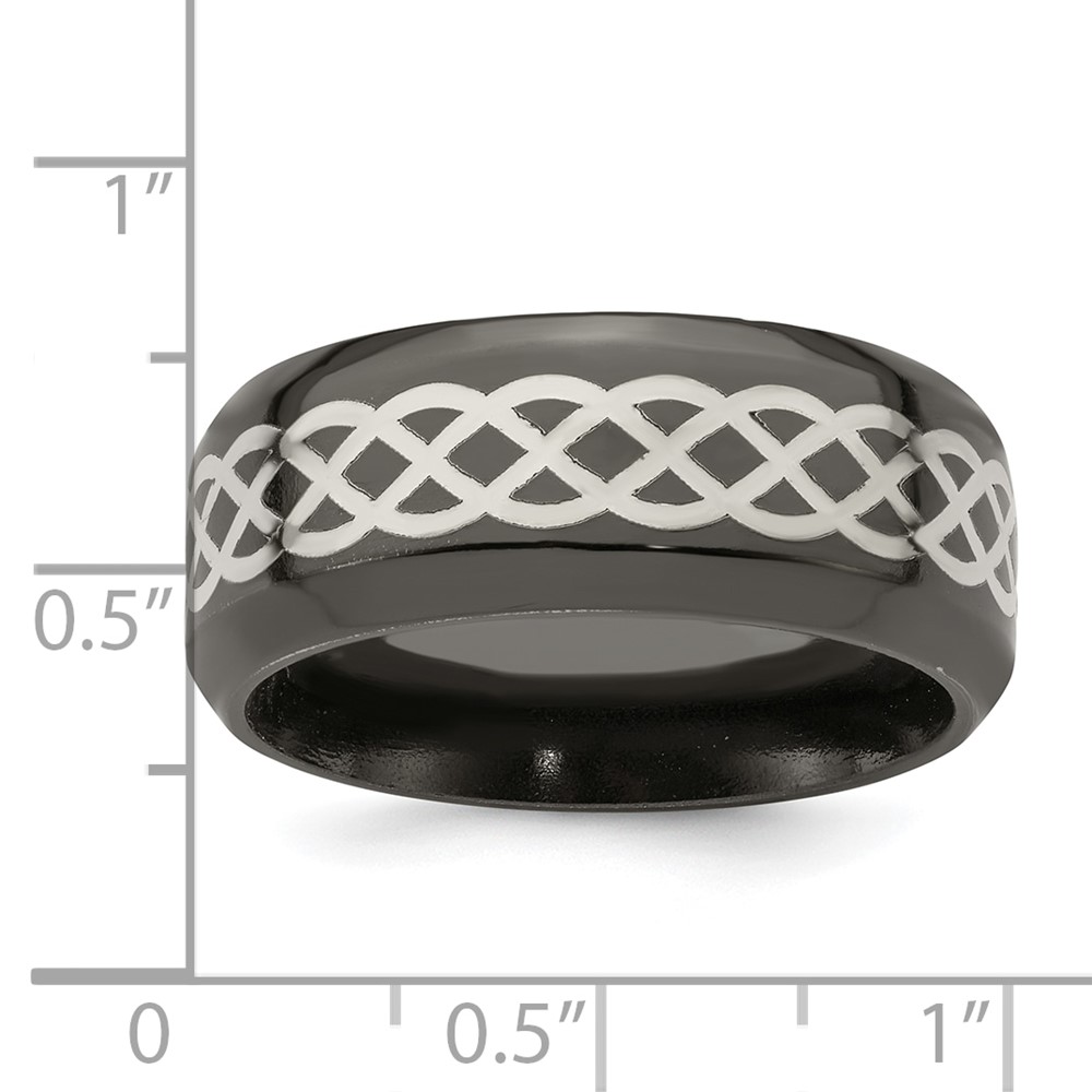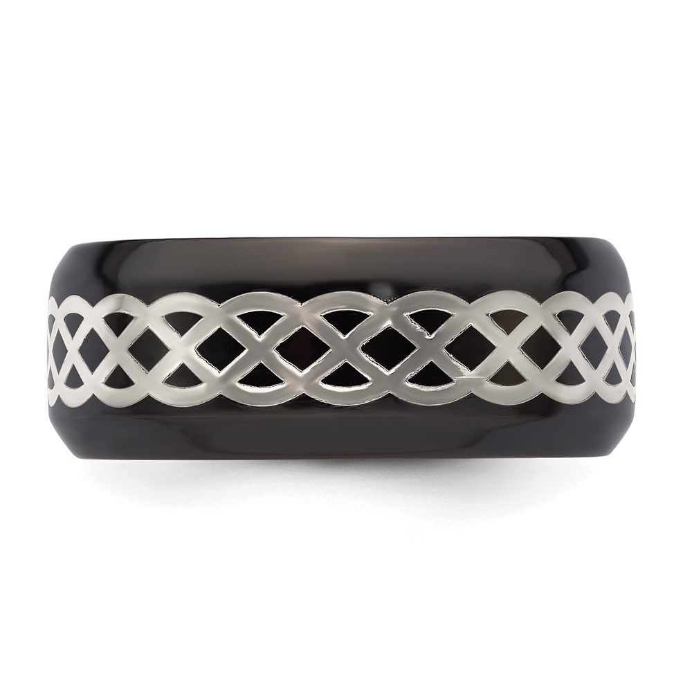 Edward Mirell Black Ti and Argentium Sterling Silver Inlay Polished Celtic Design 9mm Flat Band