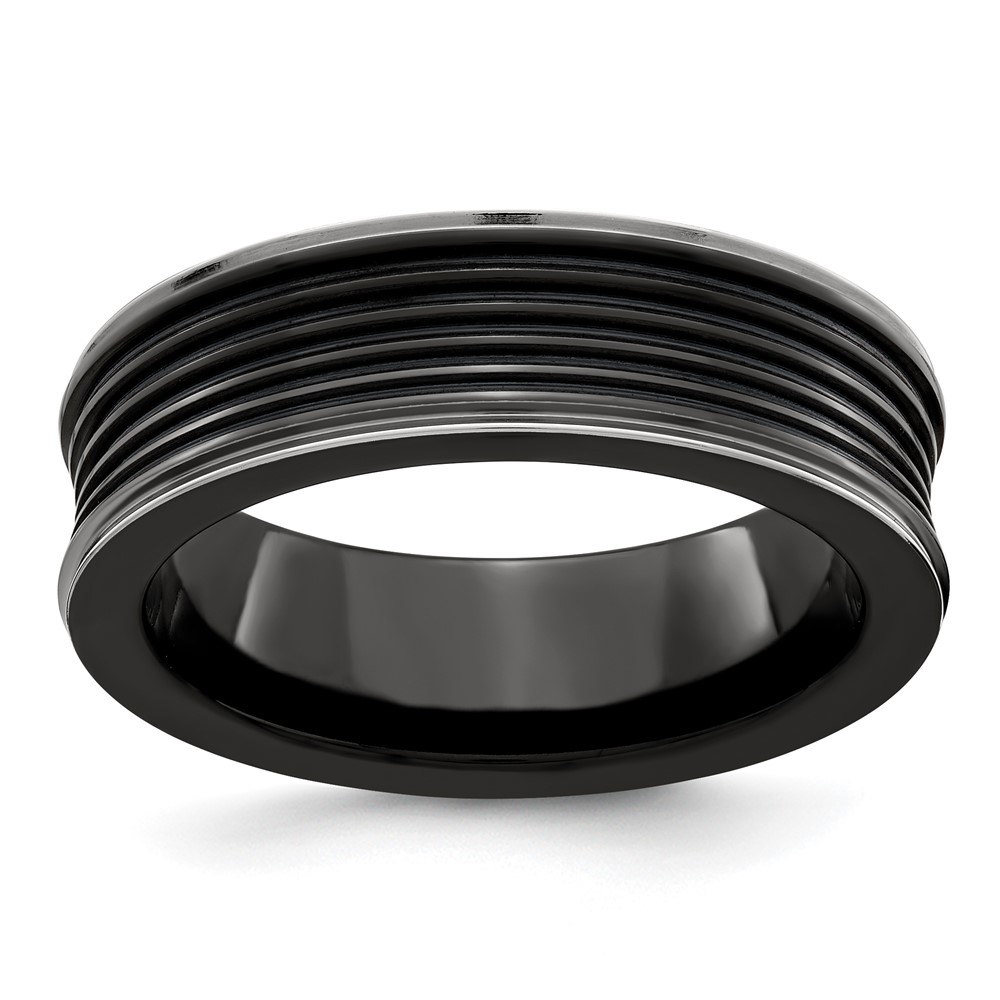 Edward Mirell Black Ti Polished Grooved Concave Ring