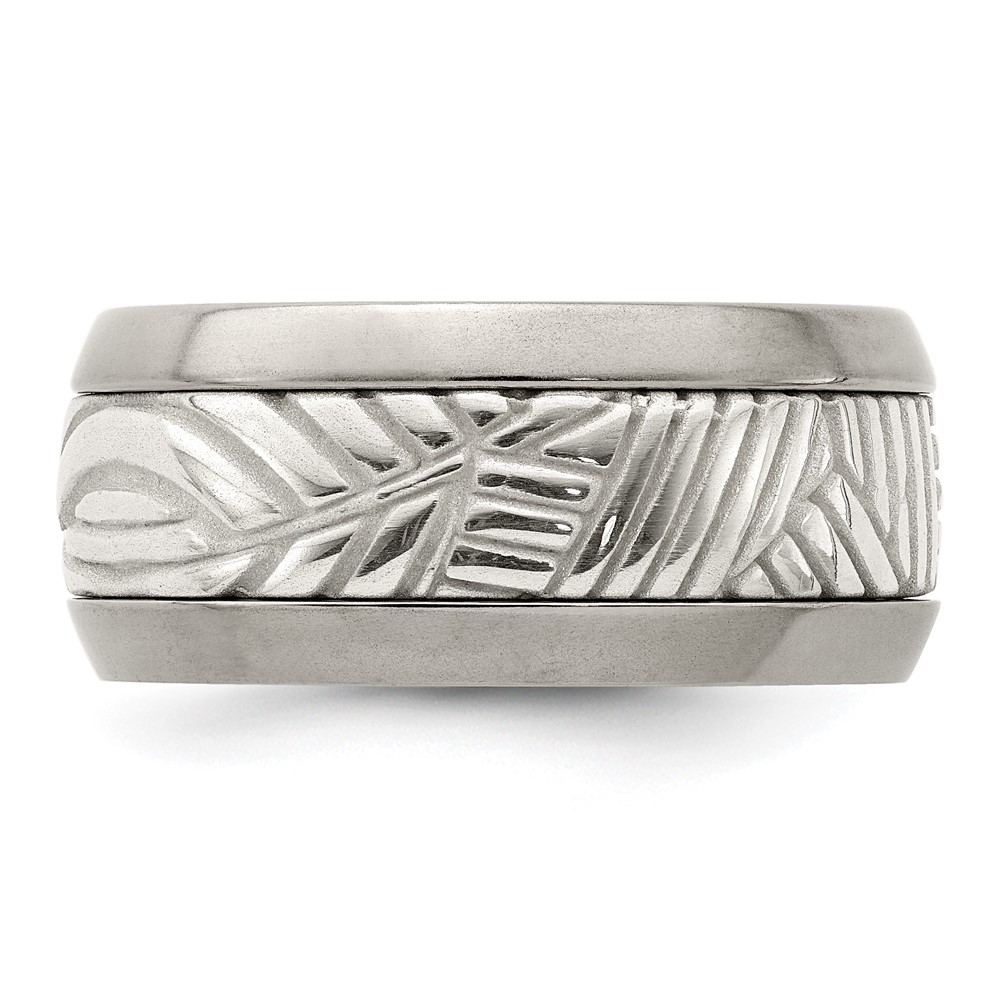 Edward Mirell Titanium & Sterling Silver Inlay Polished Leaf Ring