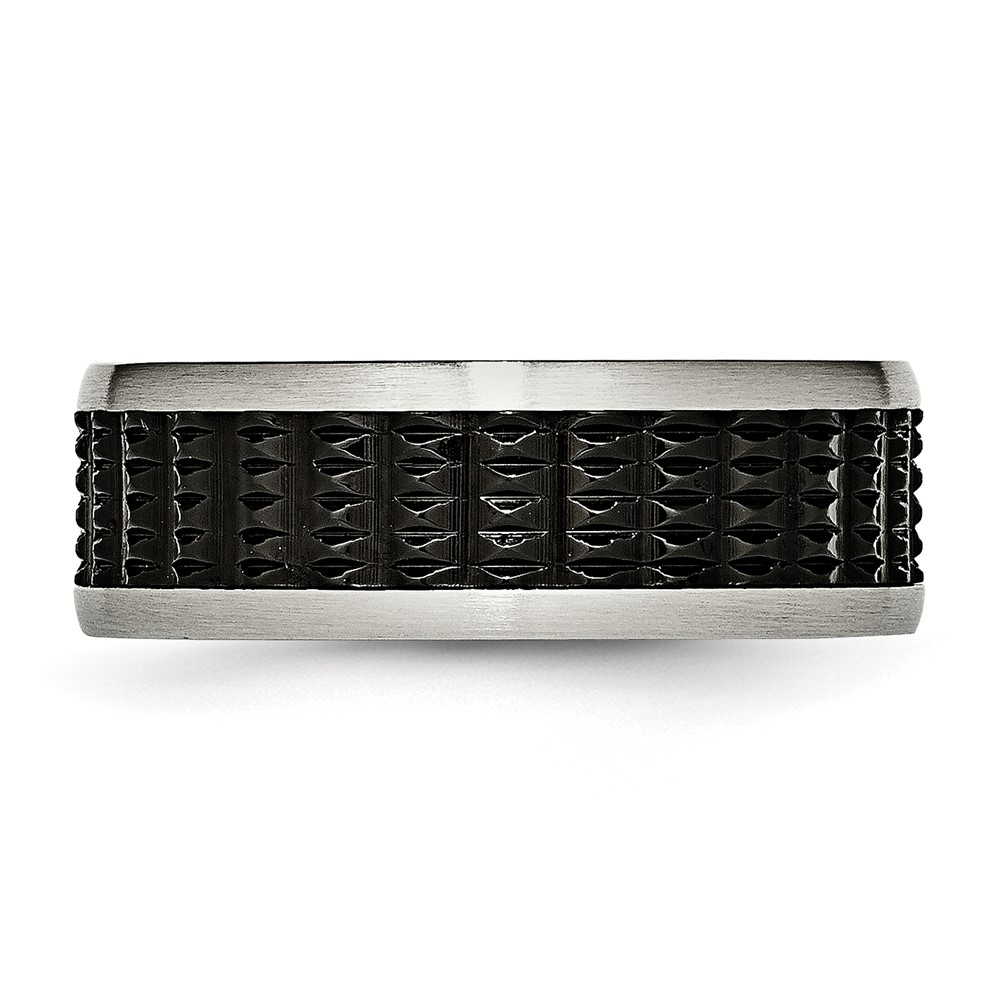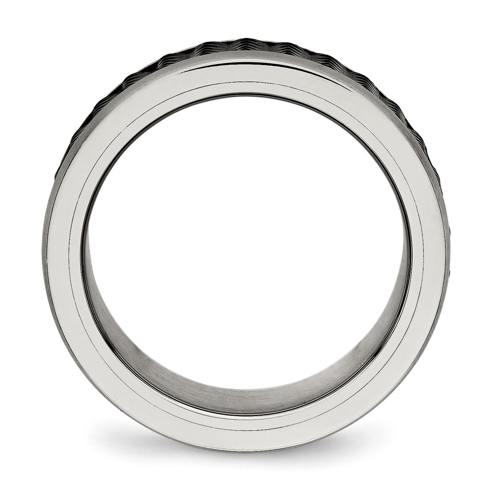 Stainless Steel Polished/Textured w/Brushed Edges Black IP-plated Band