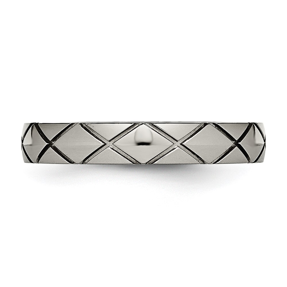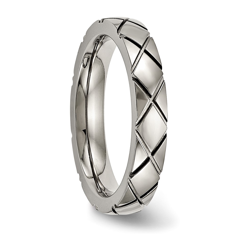Titanium Polished Criss Cross 4mm Grooved Ring