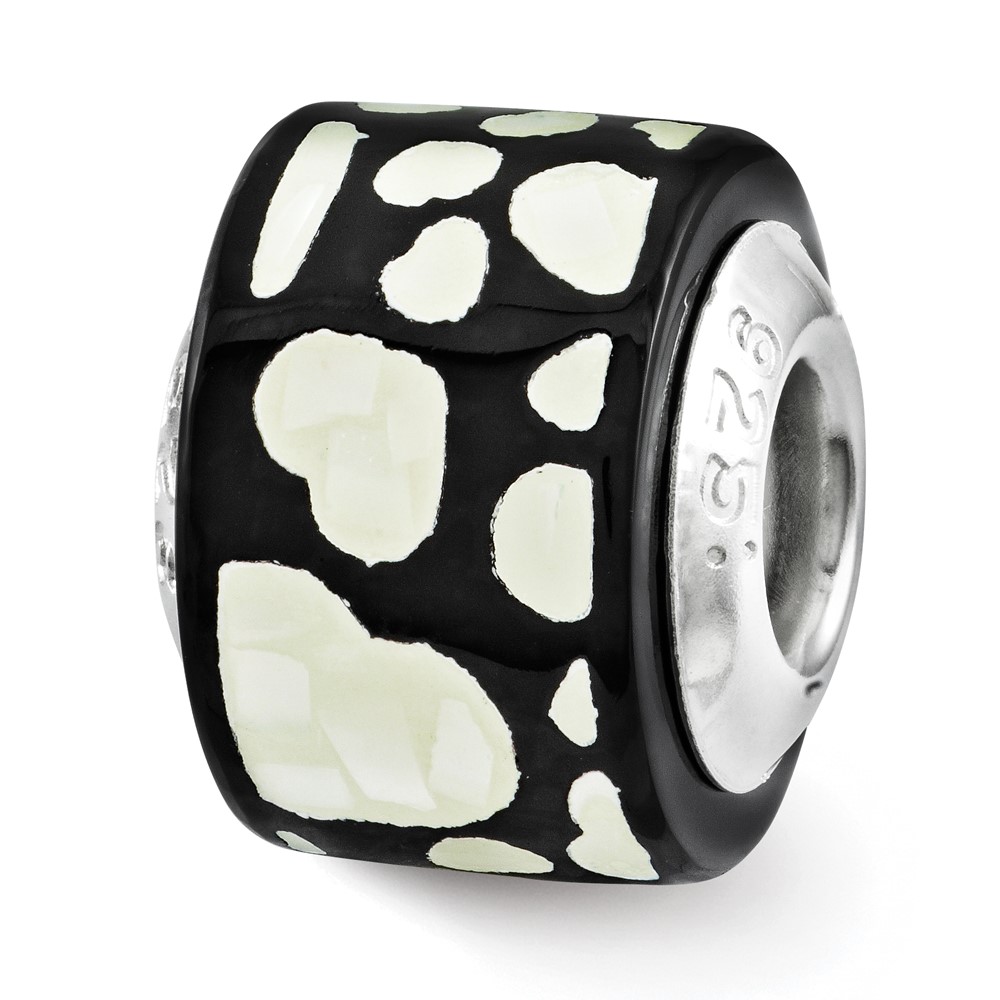 Sterling Silver Reflections Black/White MOP Hearts Mosaic Bead