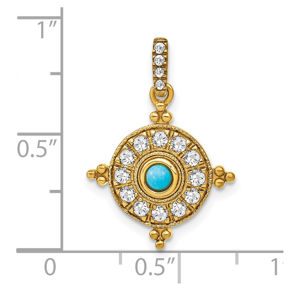 Sterling Silver Rhodium Polished Lab Created Turquoise Teardrop Pendant