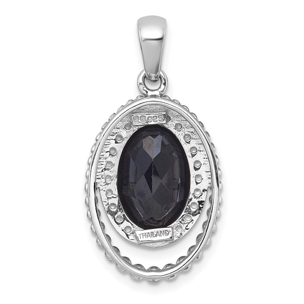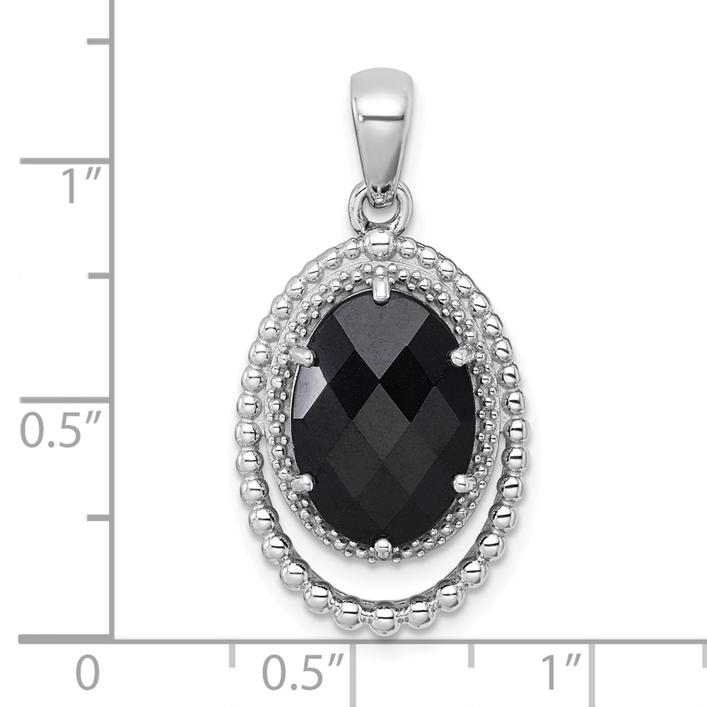 Sterling Silver Rhodium-plated Polished and Beaded Faceted Black Onyx Oval Pendant