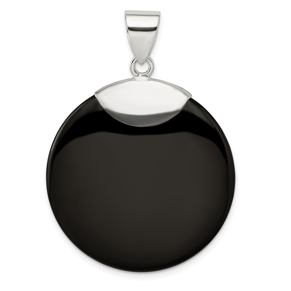 Sterling Silver Rhodium-plated Polished and Beaded Faceted Black Onyx Oval Pendant