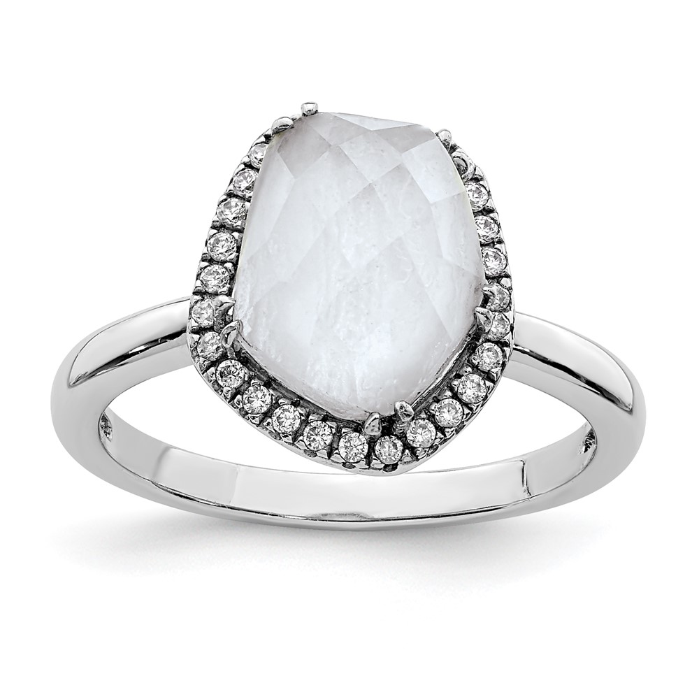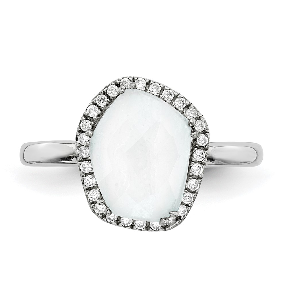 Sterling Silver Rhodium-plated Blue Lace Agate and CZ Ring