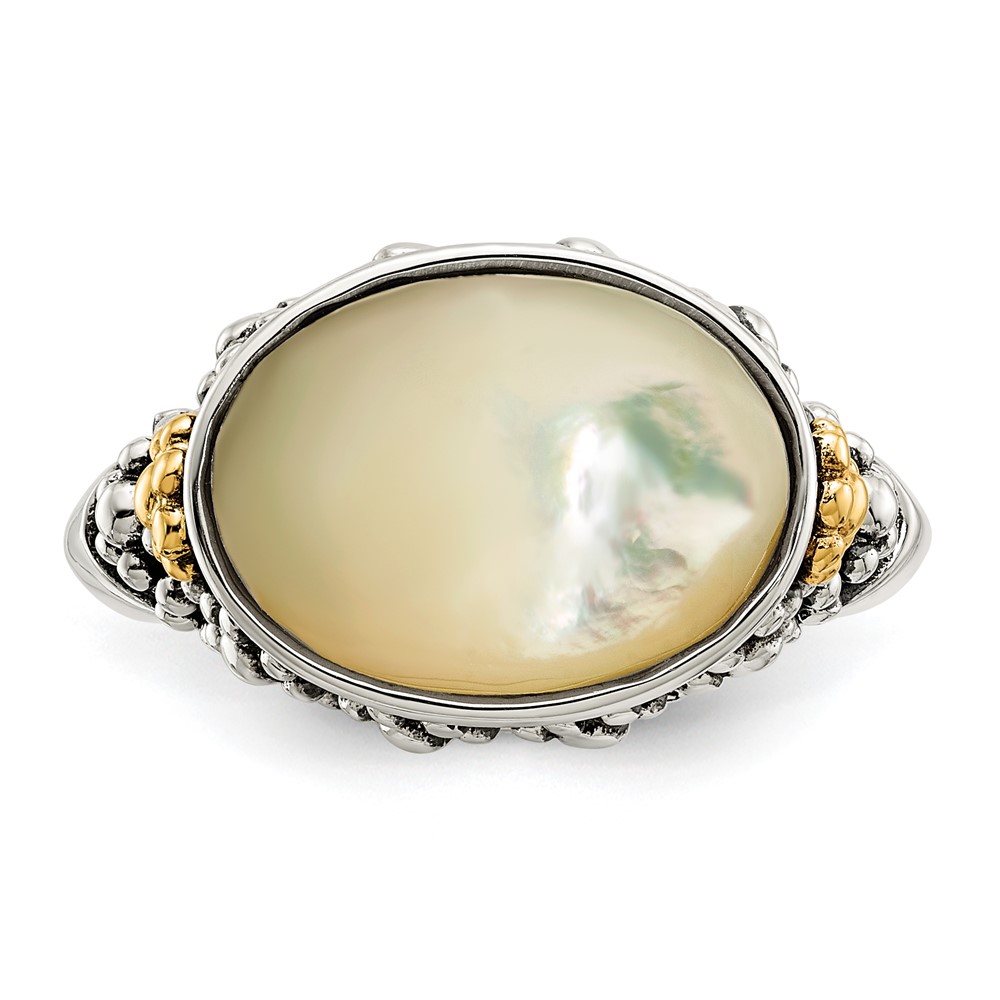 Shey Couture Sterling Silver with 14K Accent Antiqued Mother of Pearl Ring