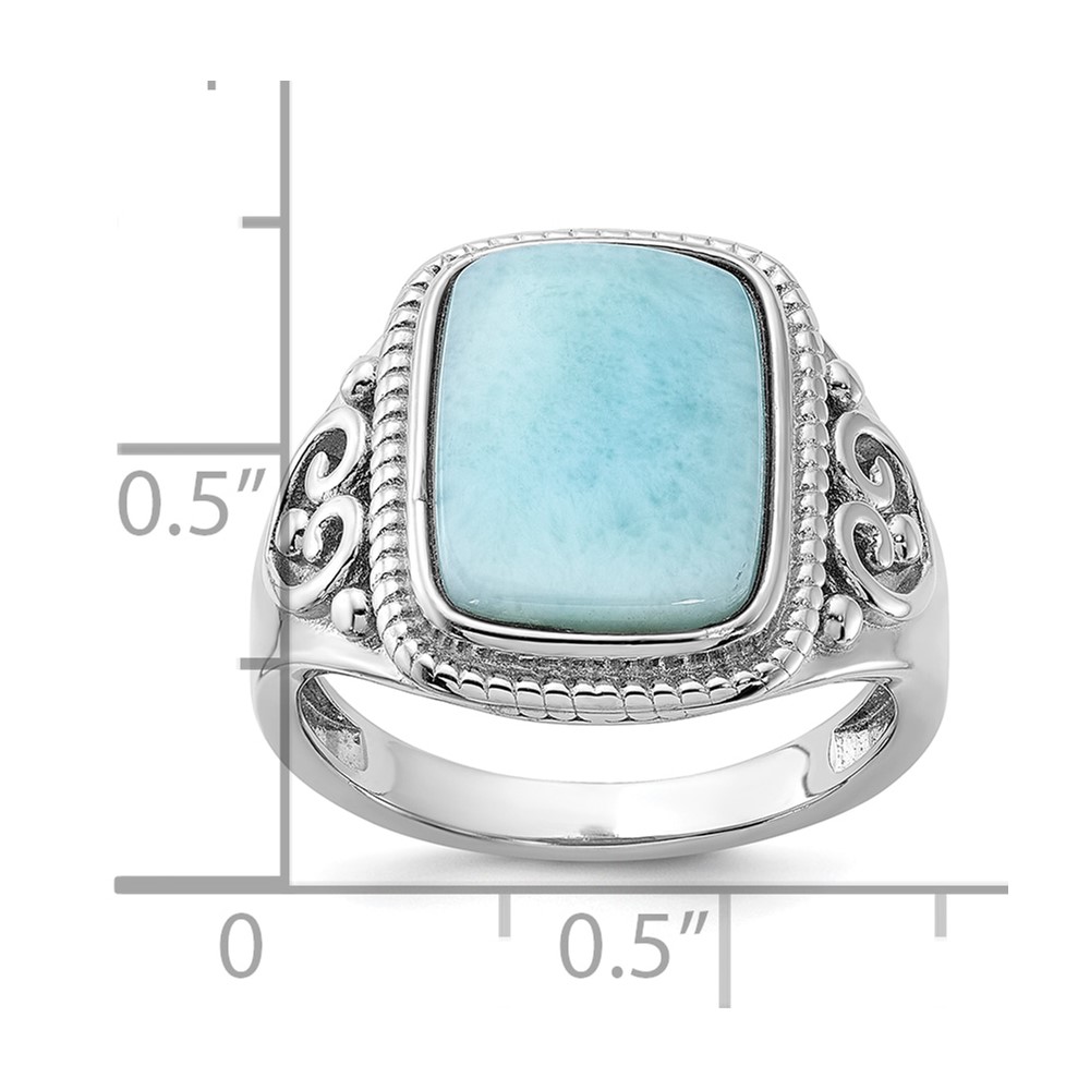 Sterling Silver Rhodium-plated Oxidized with Rectangular Larimar Ring