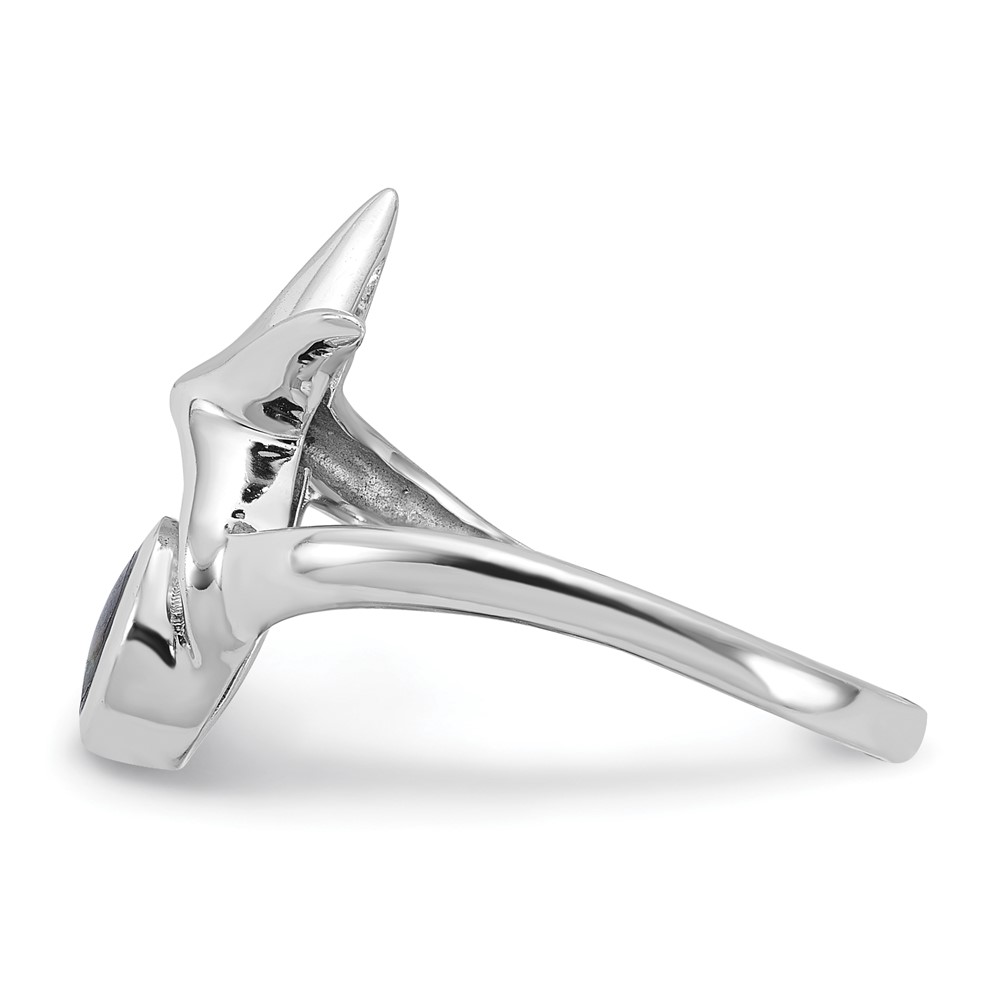 Sterling Silver Rhodium-Plated Polished Round Abalone with Starfish Ring