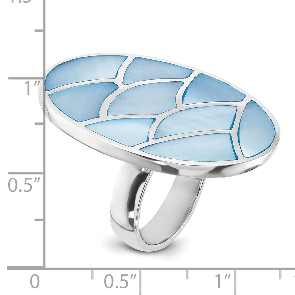 Sterling Silver Blue Mother of Pearl Scalloped Oval Ring
