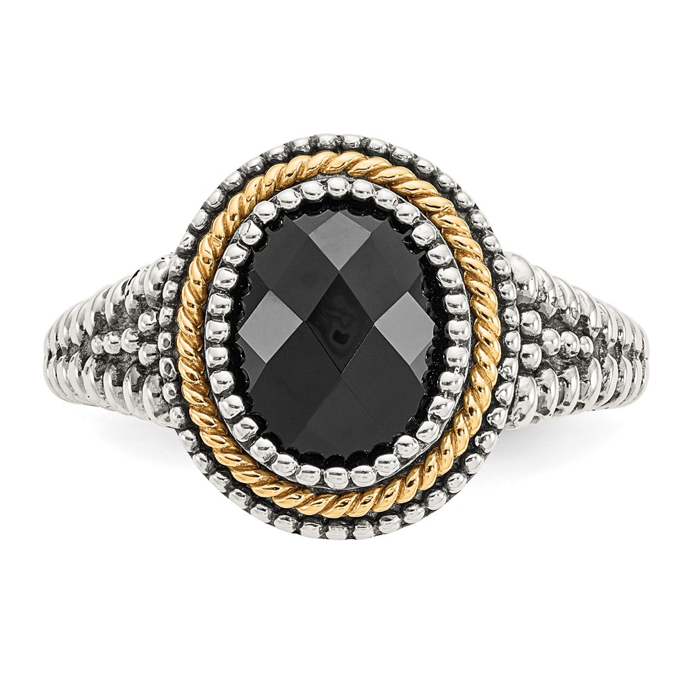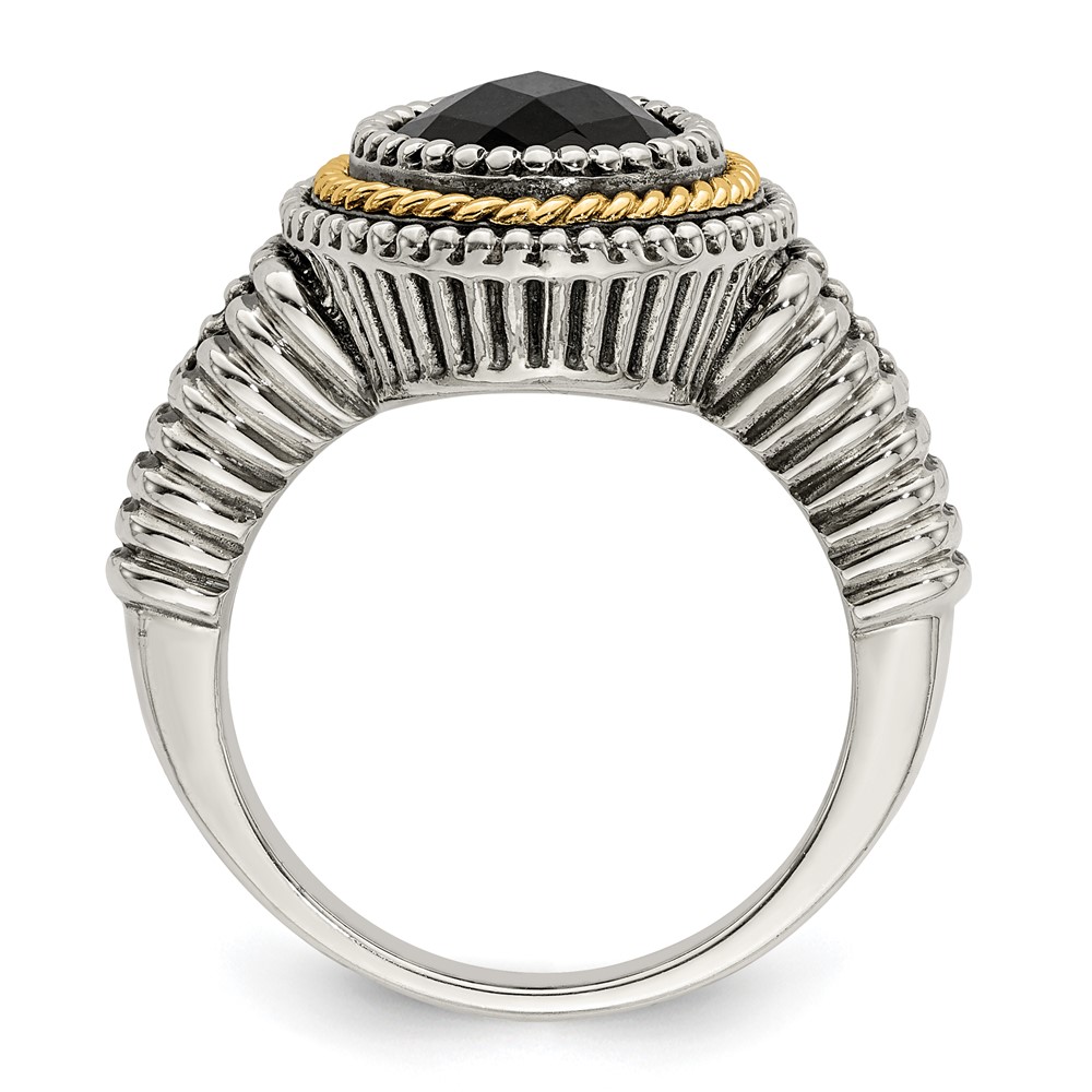Shey Couture Sterling Silver with 14K Accent Antiqued Checkerboard-cut Black Onyx Ring