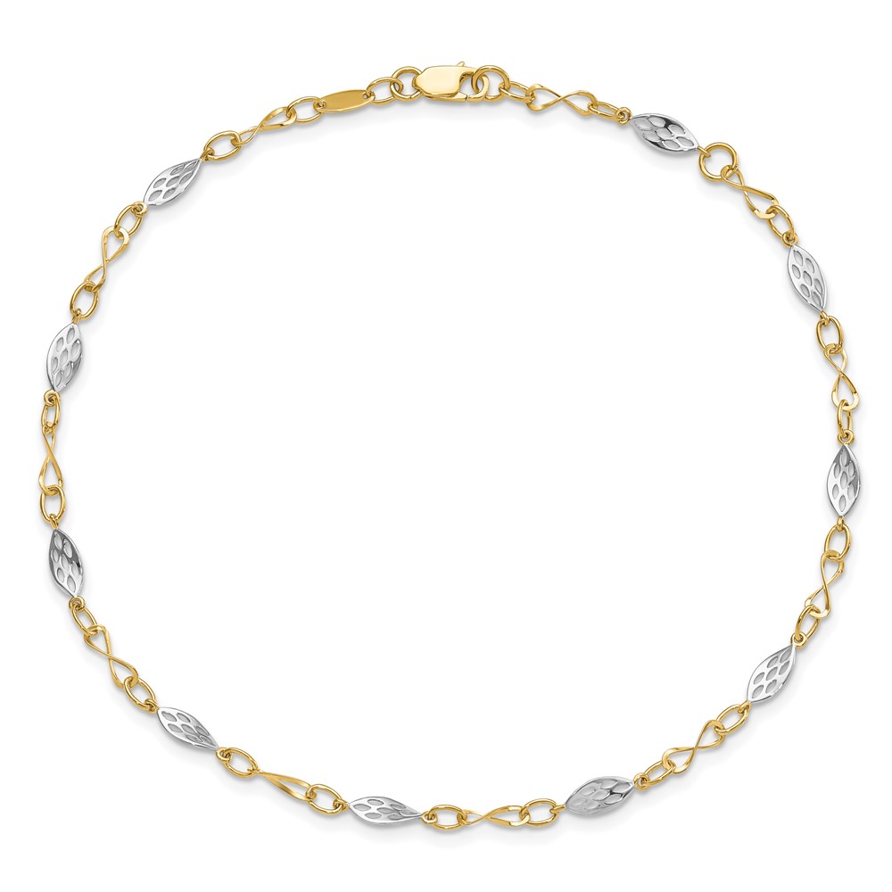 Leslie's 14K Two-tone Fancy Link 9 inch Plus 1 inch Extender - Total 10 inch Anklet