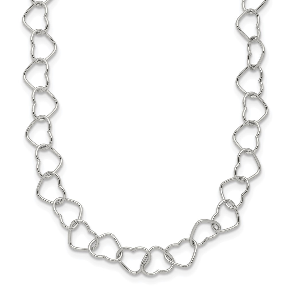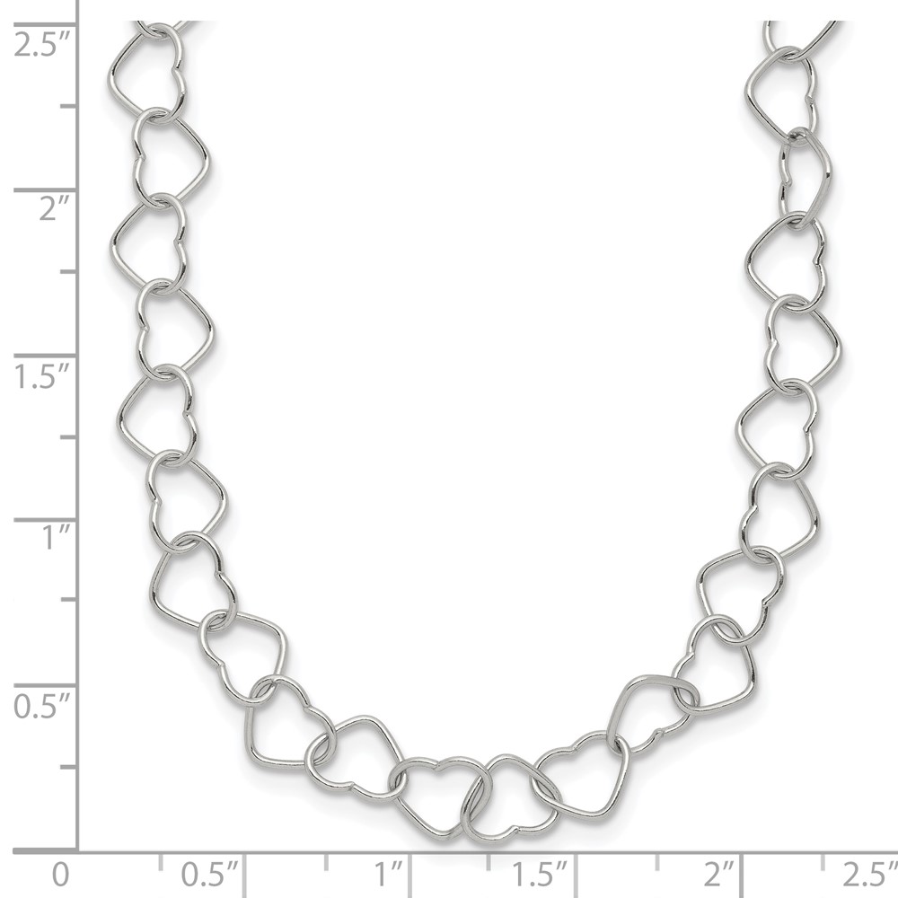 Sterling Silver 18inch Polished Fancy Heart Link Necklace
