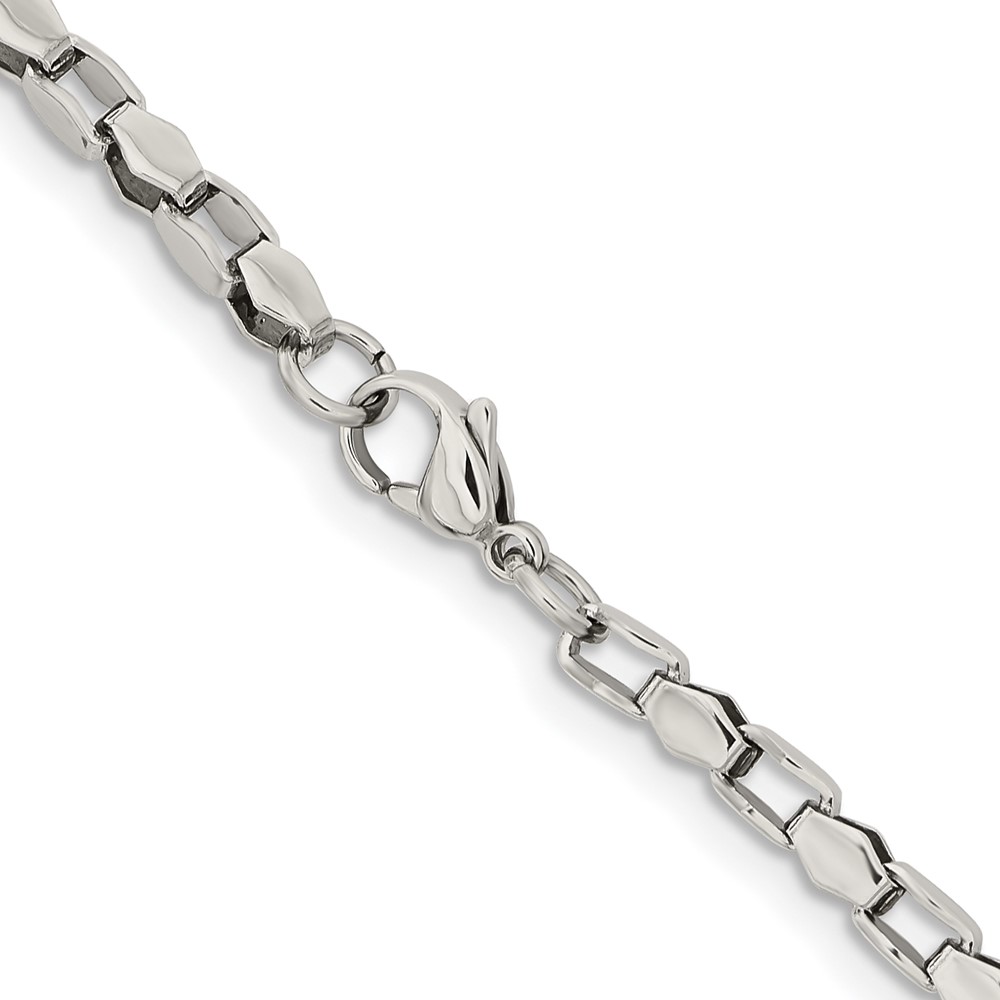 14K White Gold 8.5 inch 5mm Hand Polished with Ridged Edge Fancy Link Fancy Lobster Clasp Bracelet