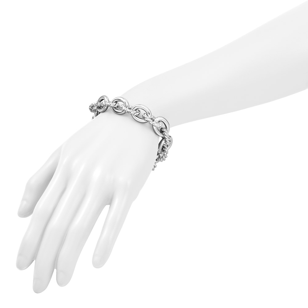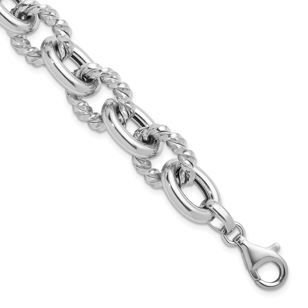 Herco Sterling Silver Rhodium-plated Polished & Twisted Oval Link Bracelet
