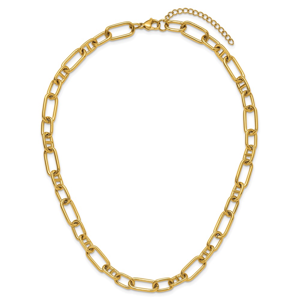 Chisel Stainless Steel Polished Yellow IP-Plated 9mm 17 inch Plus 2 inch Extension Open Link Necklace