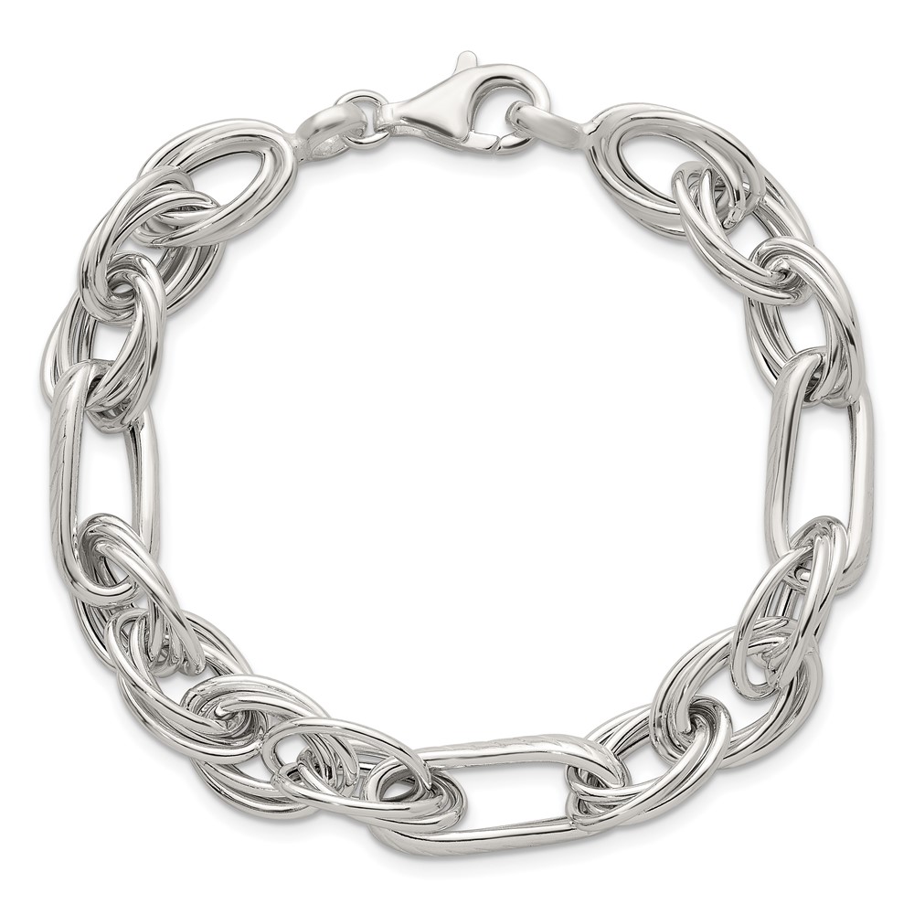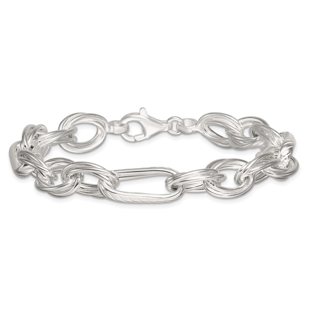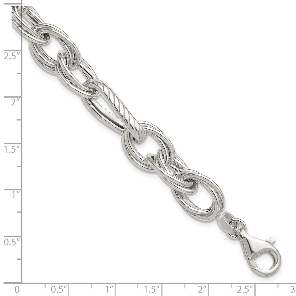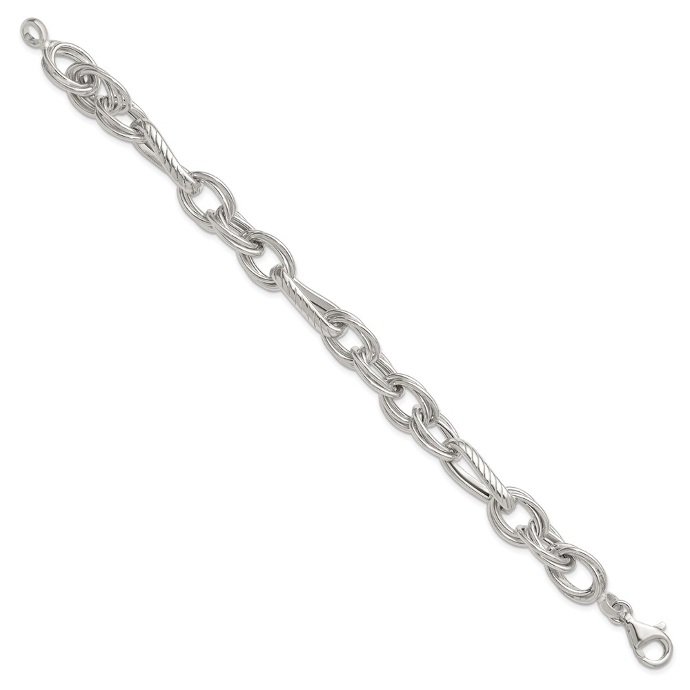 Sterling Silver Polished and Textured Triple Link and Twisted Link 8 inch Bracelet