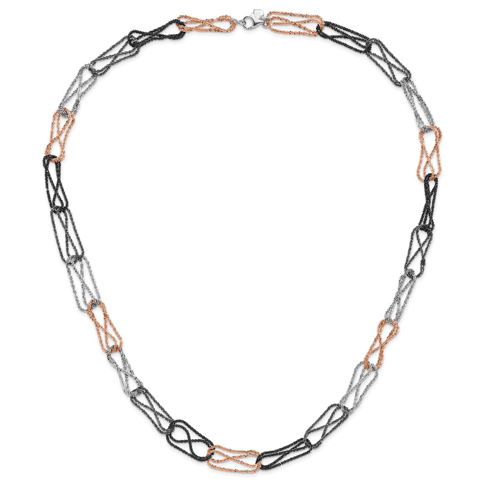 Sterling Silver Ruthenium & Black & Rose-tone Rhodium-plated Fancy Necklace