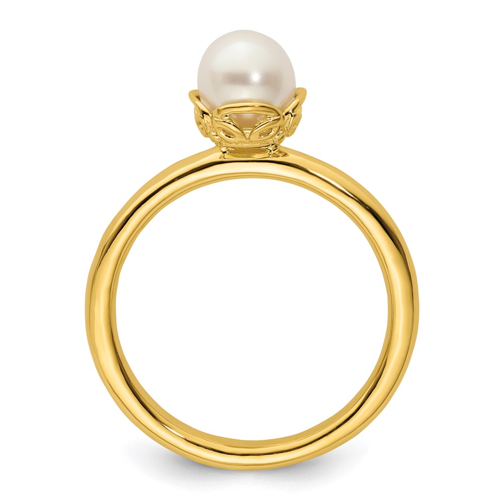 Sterling Silver Stack Exp. White FW Cultured Pearl Gold-plated Ring