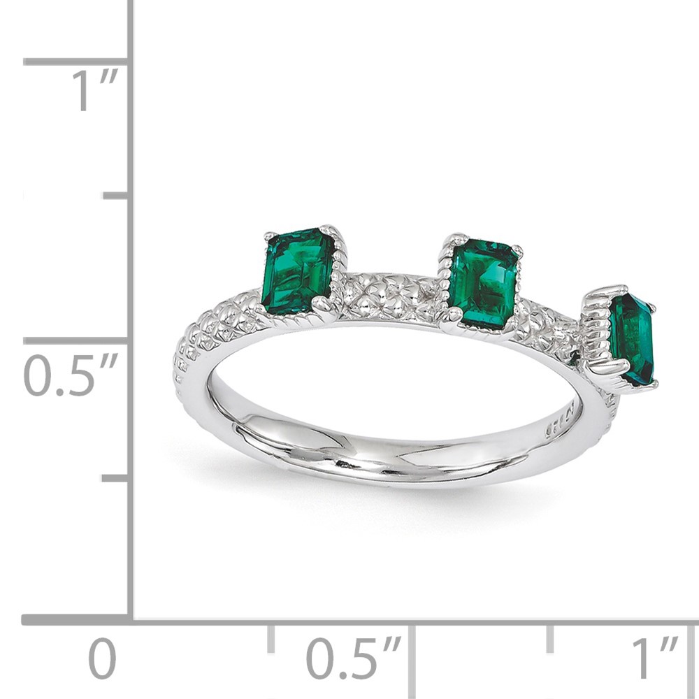 Sterling Silver Stackable Expressions Created Emerald Three Stone Ring