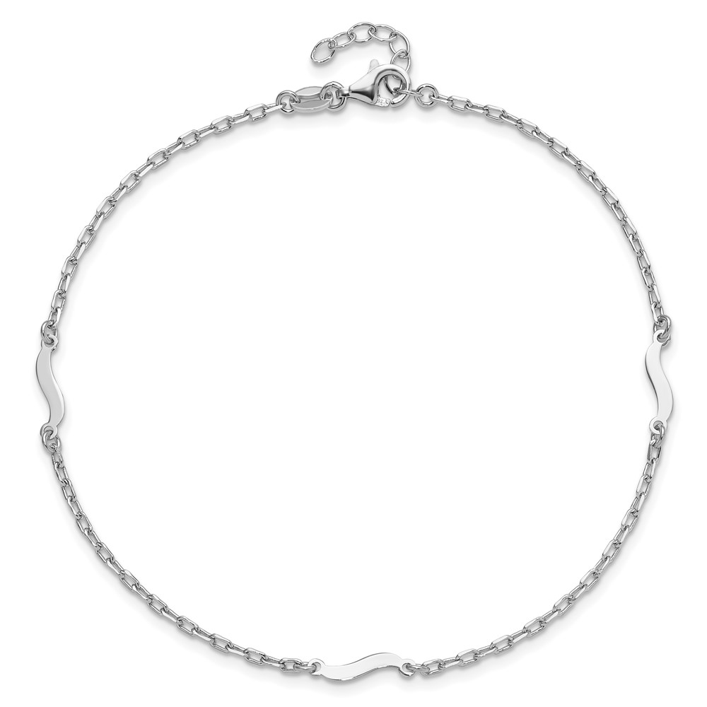 Leslie's Sterling Silver Rhodium-plated Wave 9 inch Plus 1 inch Extender - Total 10 inch Anklet