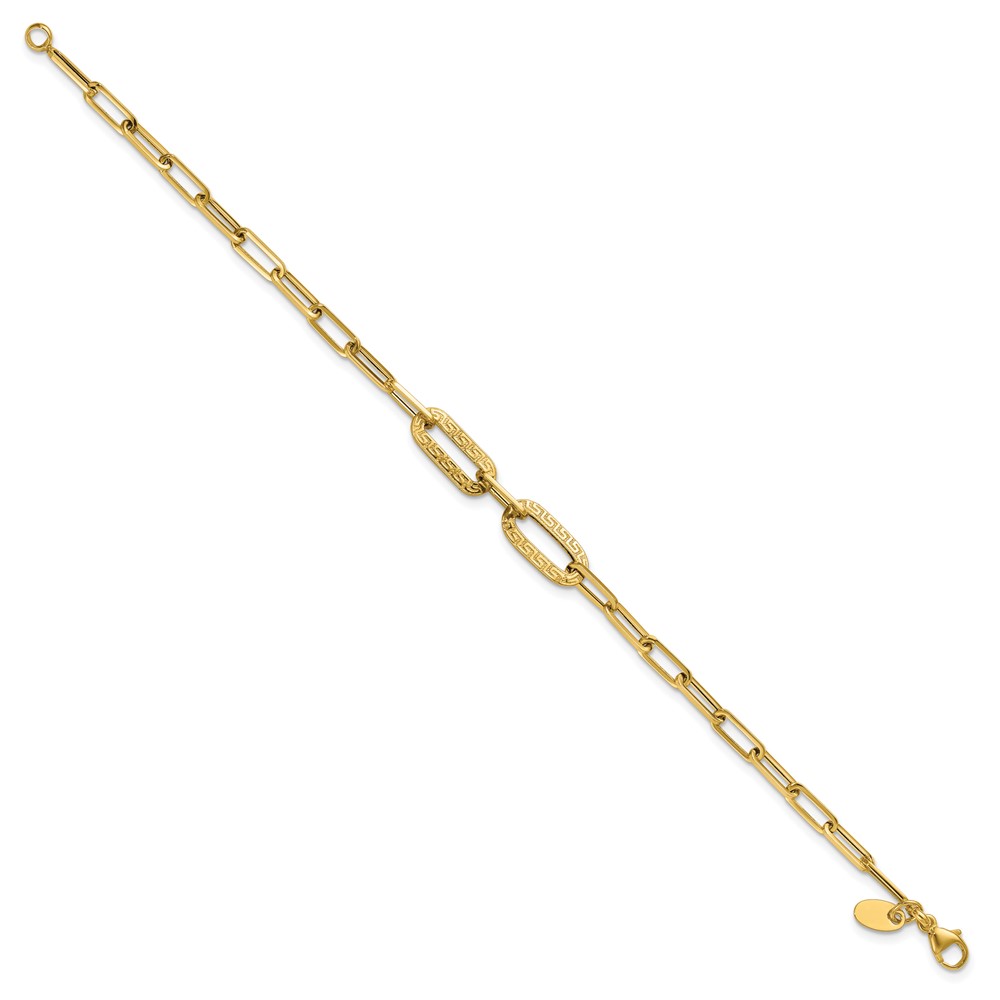 Leslie's 14K Polished Textured Greek Key Paperclip Link Bracelet