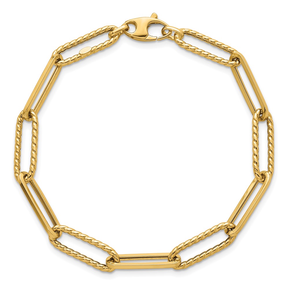 14k Polished and Twisted 6.4mm Paperclip Link 7.5 inch Bracelet