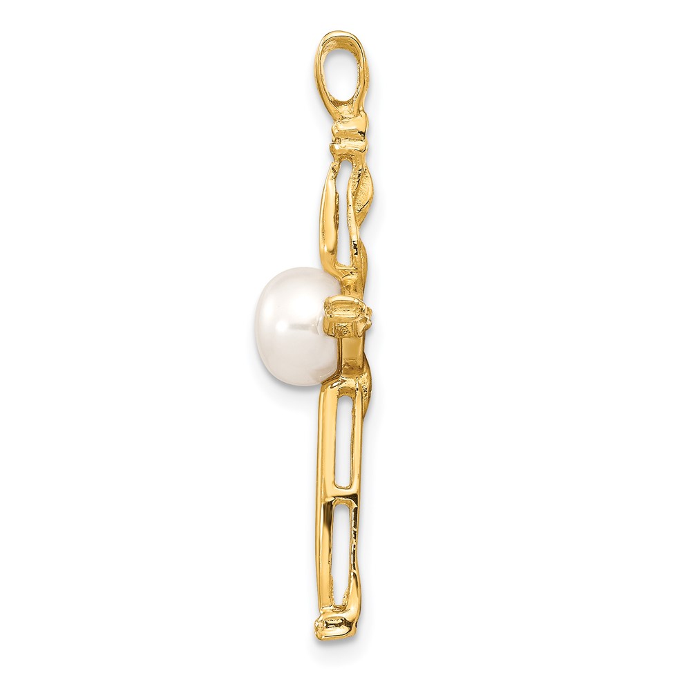 14k 6-7mm White Button Freshwater Cultured Pearl and .02 Carat Diamond Cross Pendant