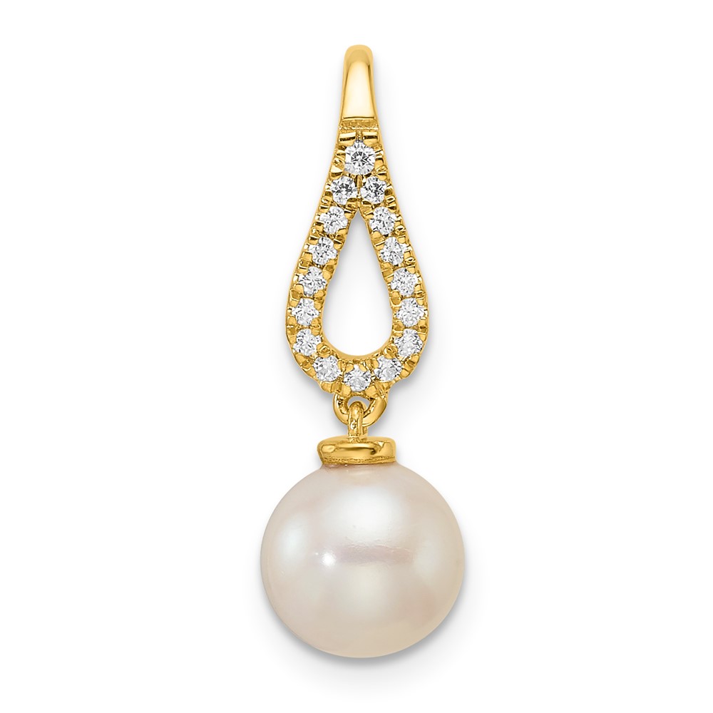 YG Sterling Silver CZ & Drop Pearl Pendant
