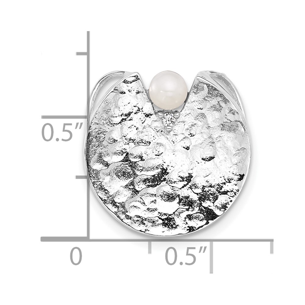 Sterling Silver Rhodium-plated Hammered with FWC Pearl CZ Chain Slide