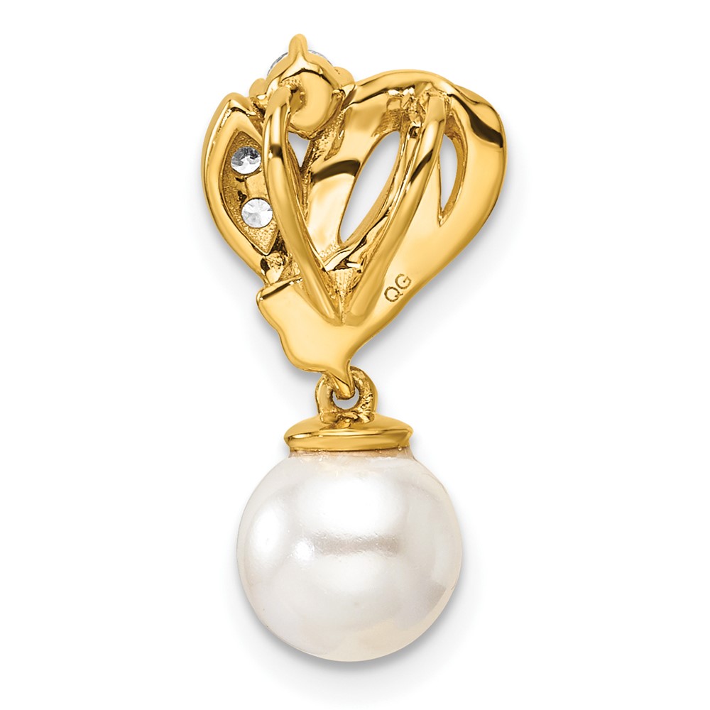 14K Polished 1/10 carat Diamond and White Freshwater Cultured Pearl Chain Slide