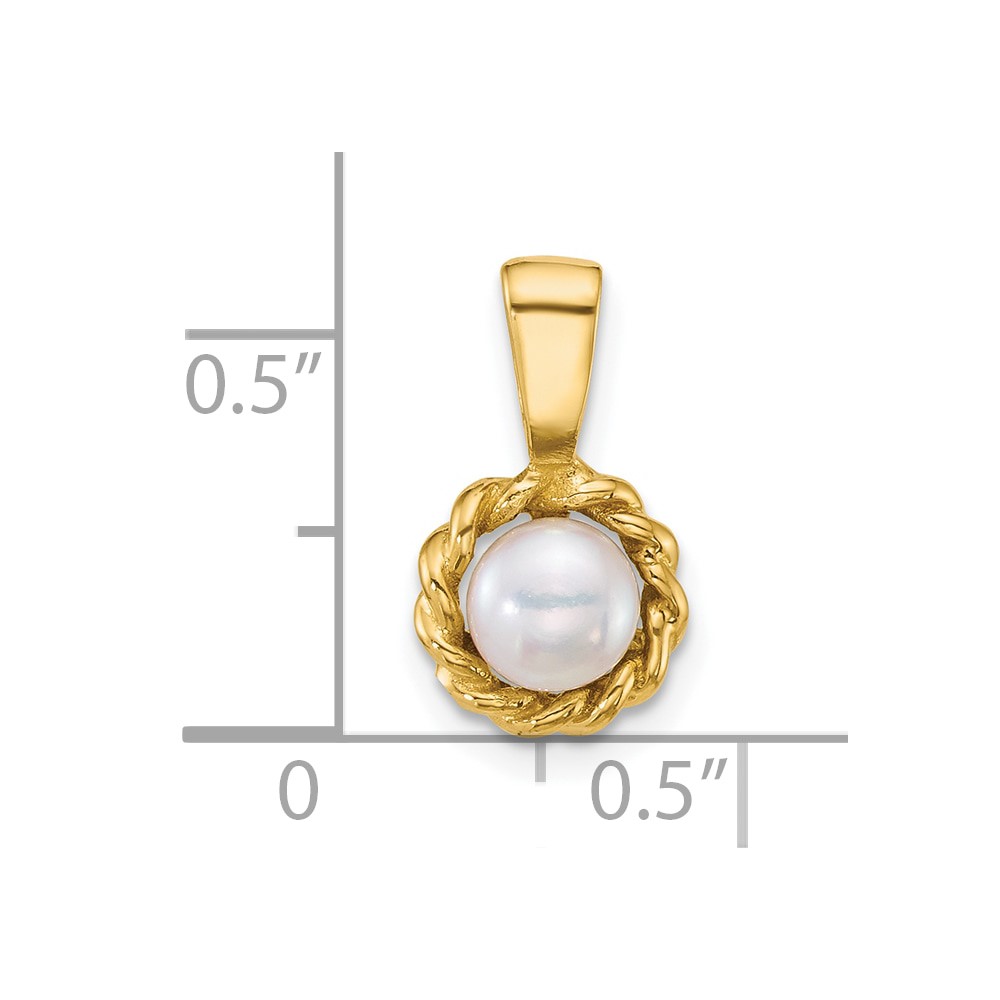 14k Polished 5-6mm Button White Freshwater Cultured Pearl Twisted Edge Pendant