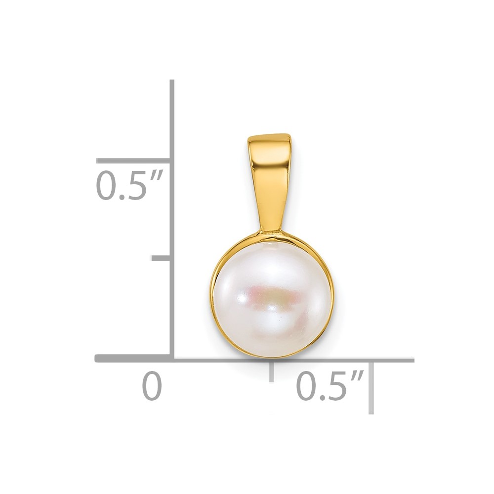 14k Polished 7-8mm Button White Freshwater Cultured Pearl Pendant