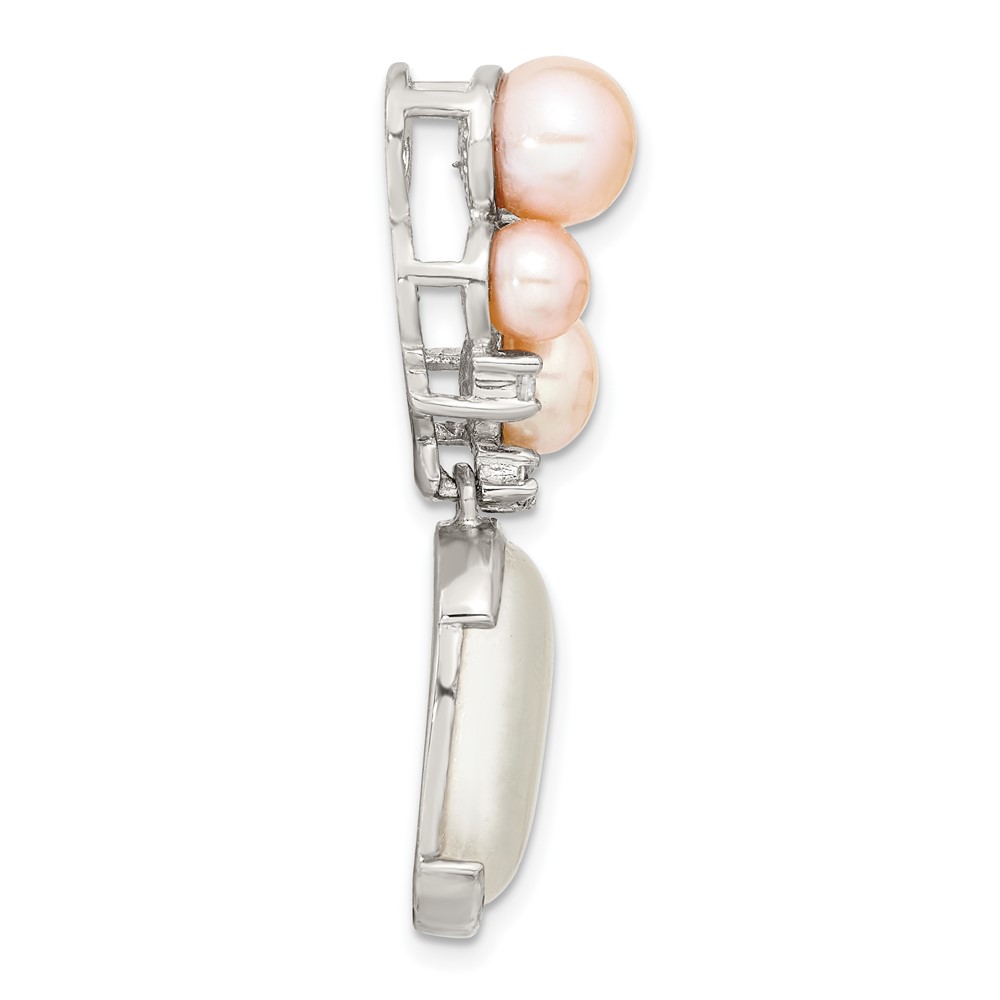 Sterling Silver Simulated Pearl and CZ Pendant