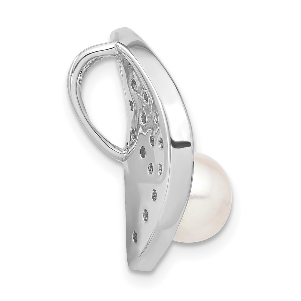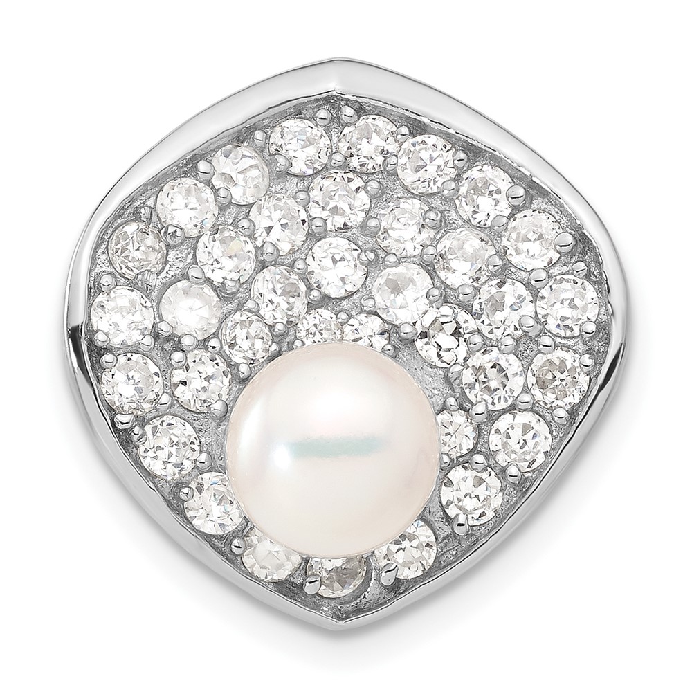 Sterling Silver Simulated Pearl & CZ Slide Pendant