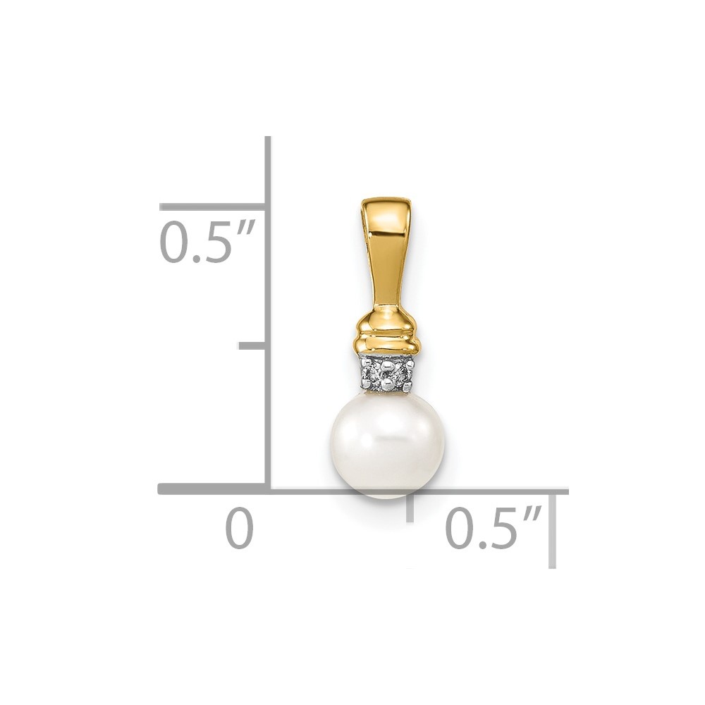 14k 5-6mm White Round Freshwater Cultured Pearl and Diamond Pendant