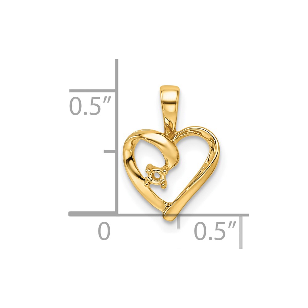 14k Holds 1-1.7mm Stone Heart Pendant Mounting