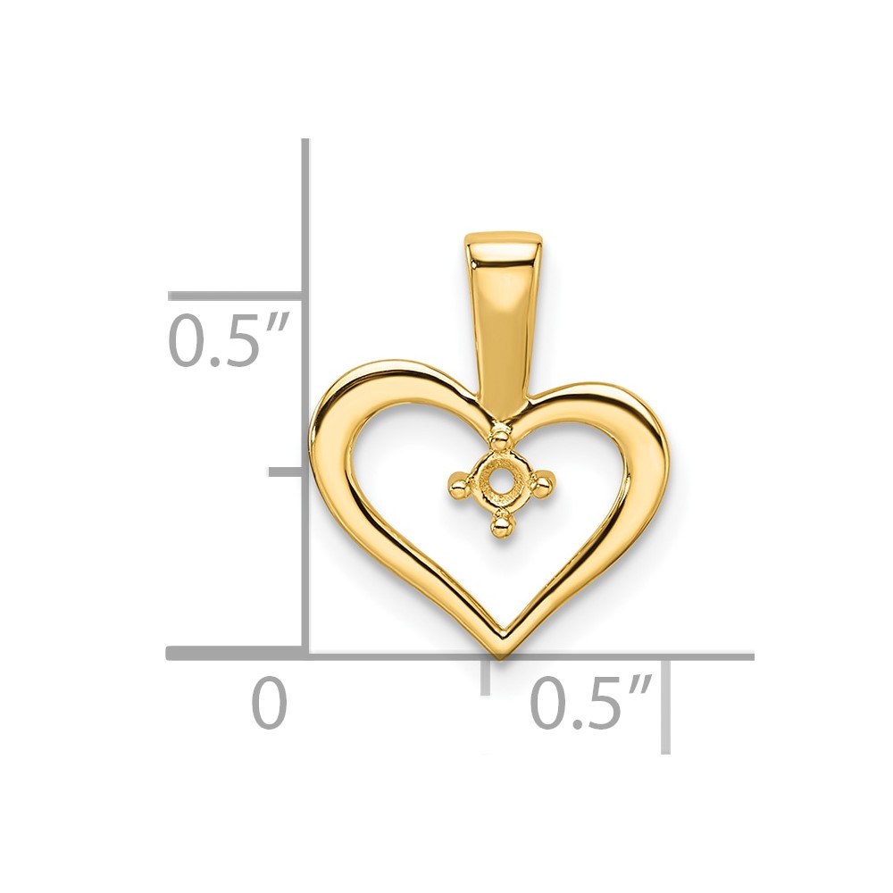 14k Holds 1-2.3mm Stone Heart Pendant Mounting