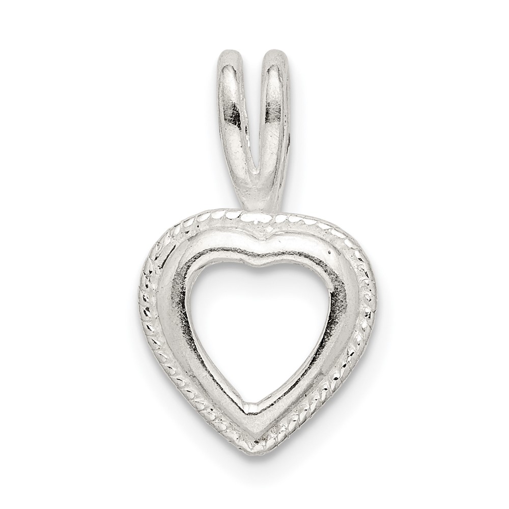 Sterling Silver Heart 6.0mm Rope Frame Back Set Fixed Bail Pendant Setting
