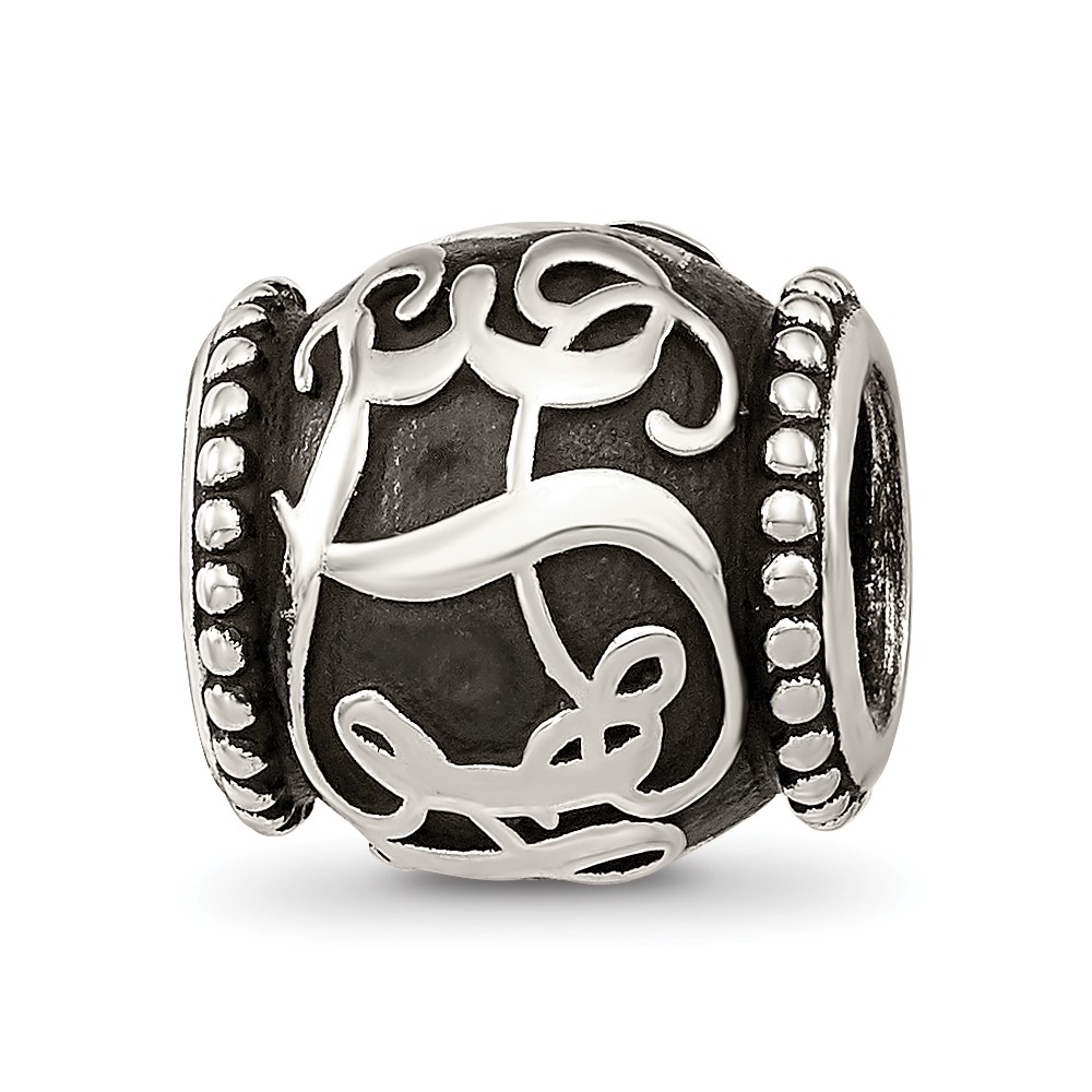 Sterling Silver Reflections Oxidized Personalized Monogram Bead