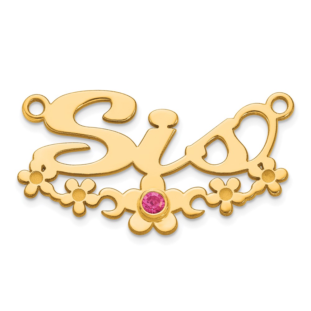 10k Yellow Gold with 14k Bezel Birthstone Flower Name Plate