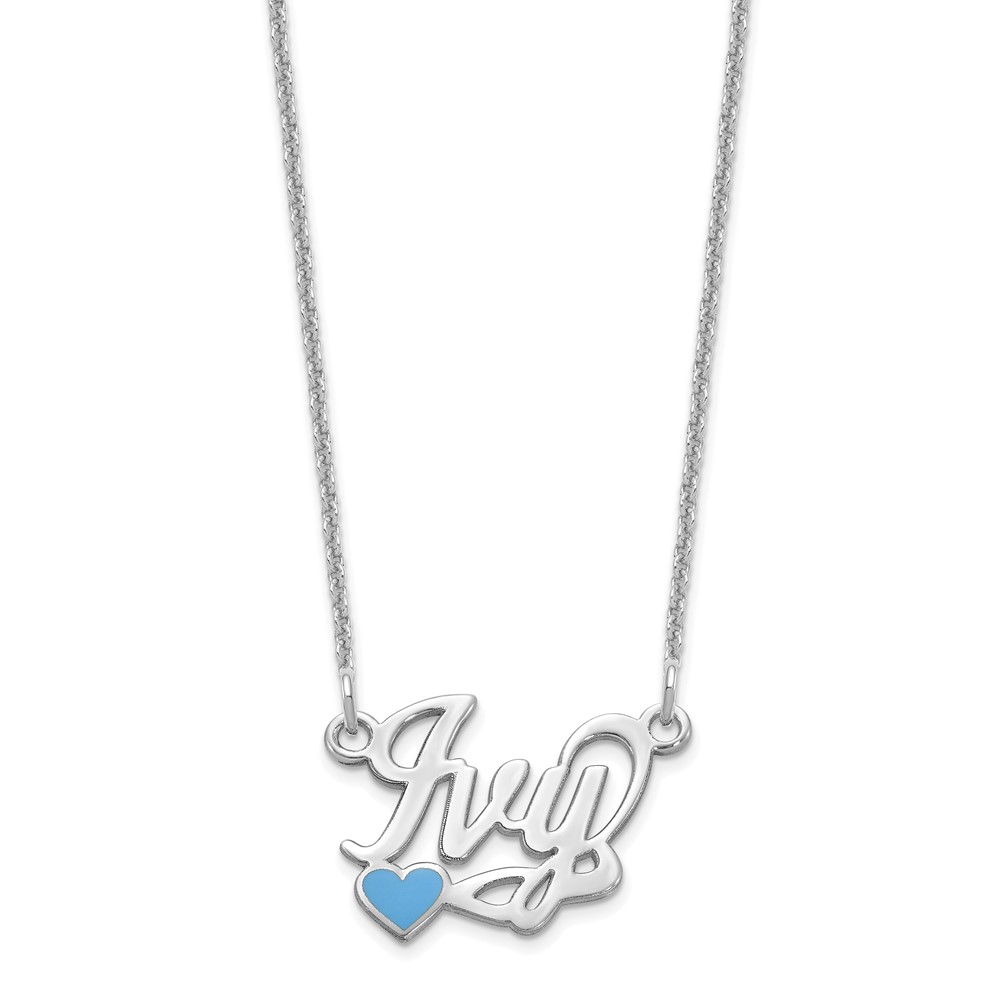 14k White Gold Epoxy Heart Name Plate